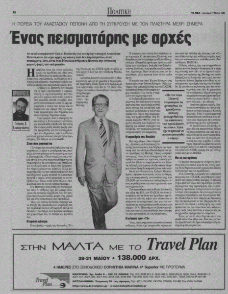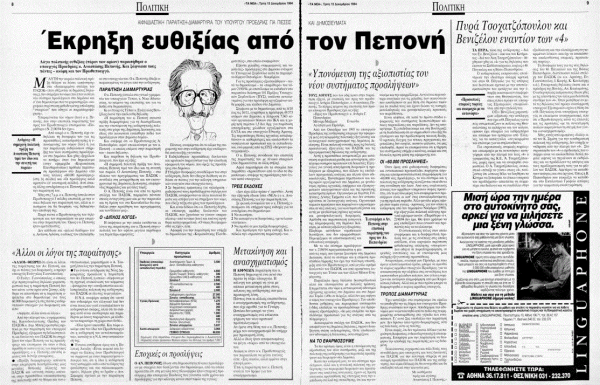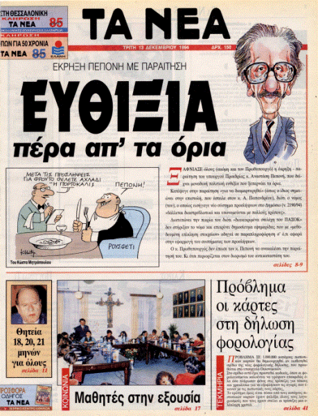 Στις 12 Δεκεμβρίου 1994 υπέβαλε αιφνιδίως την παραίτησή του από τη θέση του υπουργού Προεδρίας ο Αναστάσιος Πεπονής (1924-2011), ένας πολιτικός που με το ήθος του και το έργο του άφησε πίσω του —κατά γενική ομολογία— σημαντική παρακαταθήκη όσον αφορά το δημόσιο βίο της χώρας μας.