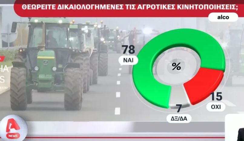 Με τον κόσμο του πρωτογενή τομέα παραγωγής να παραμένει στα μπλόκα προετοιμάζοντας τις επόμενες κινήσεις, «χαστούκι» για την κυβέρνηση αποτελούν και τα πρόσφατα δημοσκοπικά ευρήματα για τις κινητοποιήσεις σε όλη την Ελλάδα.