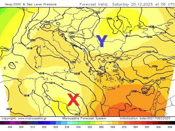 «Μετά από αρκετές ημέρες απουσίας αξιόλογων βροχοπτώσεων μιας και το ατμοσφαιρικό βουνό που απλώνεται από πάνω μας έχει κλείσει το δρόμο για τις κακοκαιρίες, βαρομετρικό χαμηλό από τον κόλπο της Σύρτης έρχεται για να «ξεκλειδώσει» την πόρτα και να ανοίξει ο δρόμος για μια σειρά από κακοκαιρίες που ενδεχομένως μας οδηγήσουν με εξάρσεις και υφέσεις ακόμη και στις πρώτες ημέρες του νέου έτους» αναφέρει αρχικά.