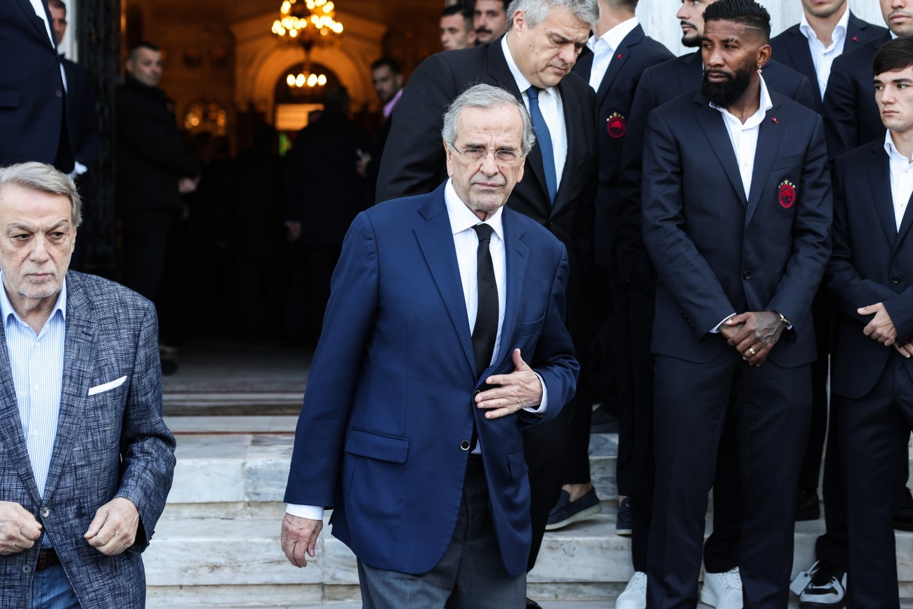 Σύσσωμη η ερυθρόλευκη οικογένεια στην κηδεία της Ειρήνης Μαρινάκη