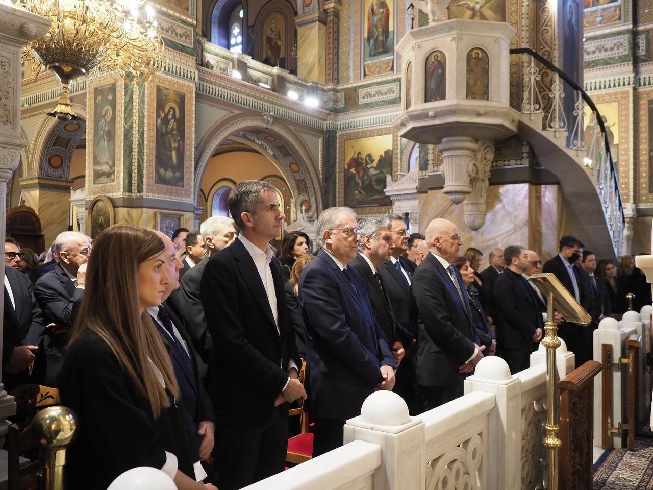 Στο τελευταίο «αντίο» βρέθηκαν, μεταξύ άλλων, κορυφαία πρόσωπα της πολιτικής ζωής, όπως ο Πρόεδρος της Βουλής Νικήτας Κακλαμάνης, ο υπουργός Εθνικής Άμυνας Νίκος Δένδιας, ο υπουργός Περιβάλλοντος και Ενέργειας Σταύρος Παπασταύρου, ο υπουργός Ανάπτυξης Τάκης Θεοδωρικάκος, ο υπουργός Ναυτιλίας και Νησιωτικής Πολιτικής Βασίλης Κικίλιας, η υπουργός Κοινωνικής Συνοχής και Οικογένειας Δόμνα Μιχαηλίδου, ο πρόεδρος του ΠΑΣΟΚ Νίκος Ανδρουλάκης, ο πρώην πρωθυπουργός Αντώνης Σαμαράς.