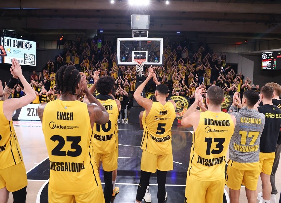 Ο Άρης Betsson «φλέρταρε» έντονα με μια οδυνηρή ήττα στο Αμβούργο που δεν είχε νίκη ως τώρα στο EuroCup, ωστόσο δείχνοντας και πάλι χαρακτήρα και ψυχραιμία στα τελευταία λεπτά έφτασε σε μια πολύτιμη εκτός έδρας νίκη για την 11η αγωνιστική της διοργάνωσης. Ατμόσφαιρα που θύμισε… Παλέ δημιούργησαν οι οπαδοί του που γέμισαν μεγάλο μέρος της «INSELPARK Arena» και δεν σταμάτησαν να τραγουδούν.