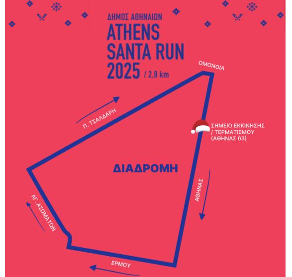 Ο Δήμος Αθηναίων ετοιμάζεται να ντυθεί στα κόκκινα και να υποδεχθεί το Athens Santa Run 2025, τη μεγάλη γιορτή αθλητισμού, χαράς και αλληλεγγύης, που θα πραγματοποιηθεί την Κυριακή 21 Δεκεμβρίου, στο κέντρο της πόλης.