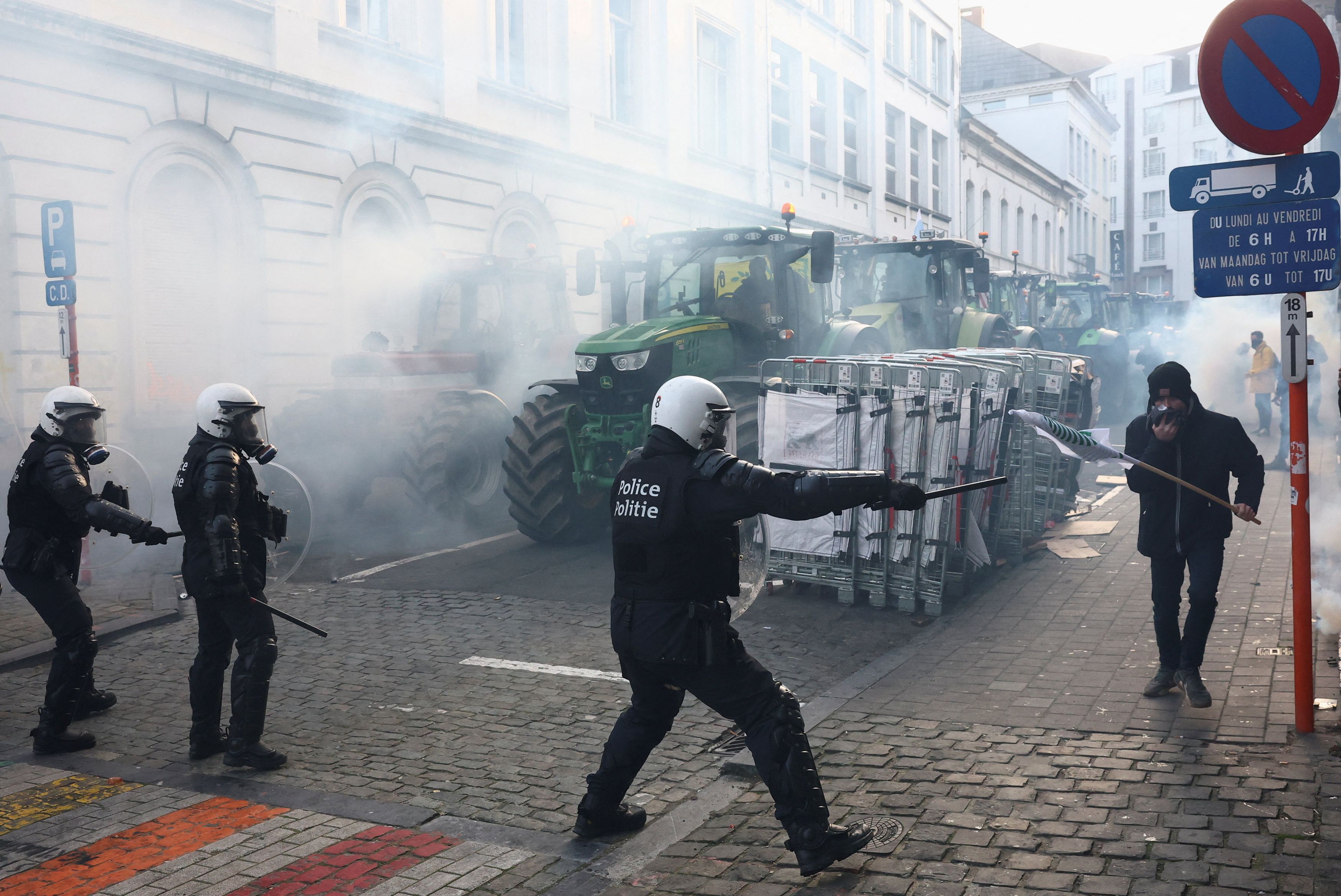 Πεδίο μάχης οι Βρυξέλλες – Οι αγρότες στους δρόμους – Επεισόδια, φωτιές και δακρυγόνα