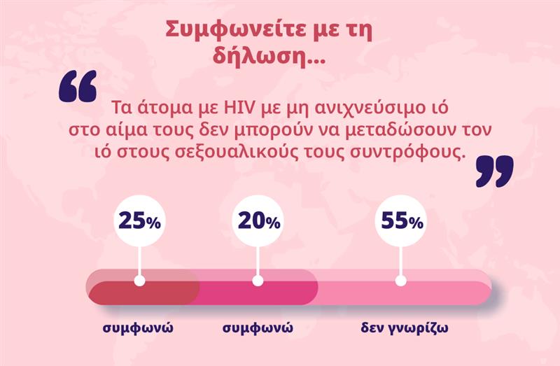 #1 Μόνο το 25% γνωρίζει ότι ένα άτομο με μη ανιχνεύσιμο ιικό φορτίο δεν μεταδίδει τον HIV