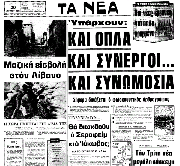 «ΤΑ ΝΕΑ», 20.1.1976, Ιστορικό Αρχείο «ΤΟ ΒΗΜΑ» & «ΤΑ ΝΕΑ»