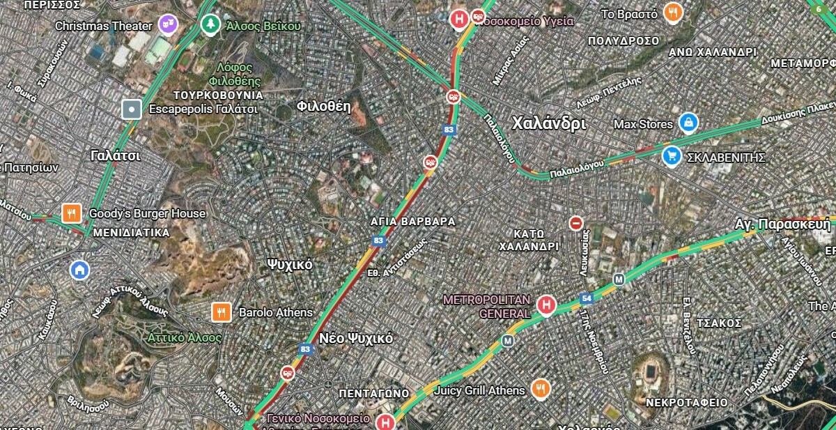 Συγκεκριμένα, υπάρχει μποτιλιάρισμα στη συμβολή της λεωφόρου Κηφισίας με την Αγίας Φιλοθέης στο ρεύμα ανόδου προς Κηφισιά.