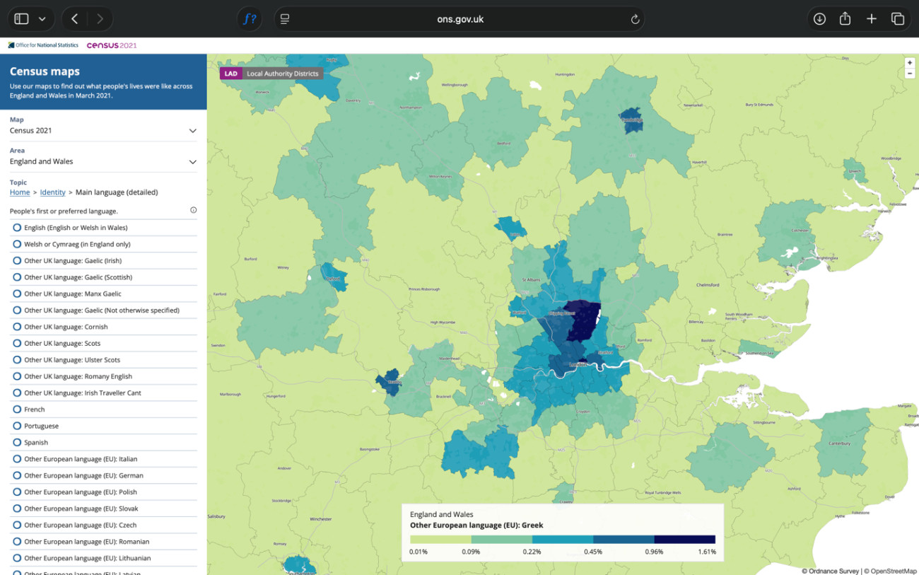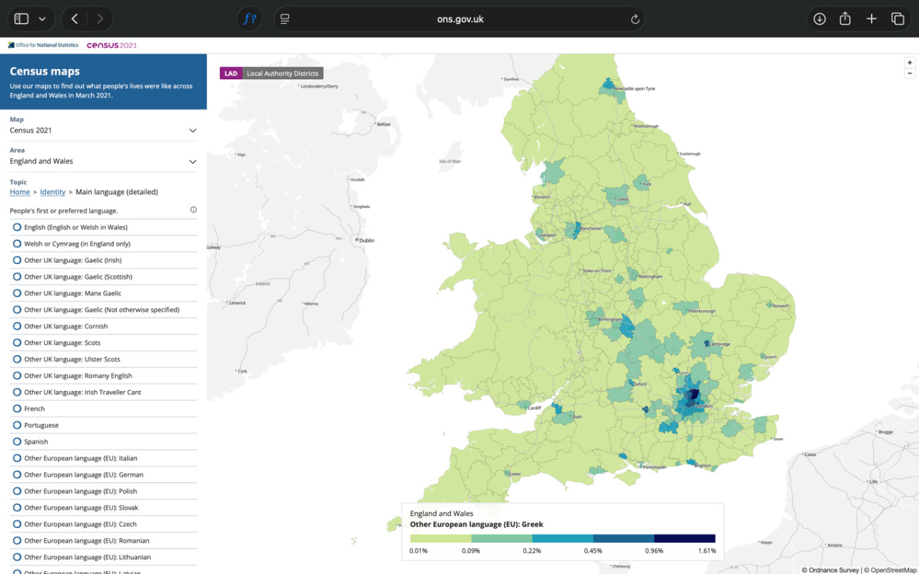 Τα Ελληνικά στην Αγγλία και την Ουαλία: πού μιλιούνται περισσότερο
