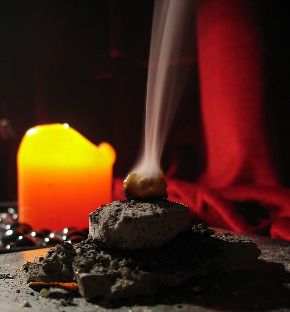 Έμμεση καύση λιβανιού πάνω σε αναμμένα κάρβουνα.