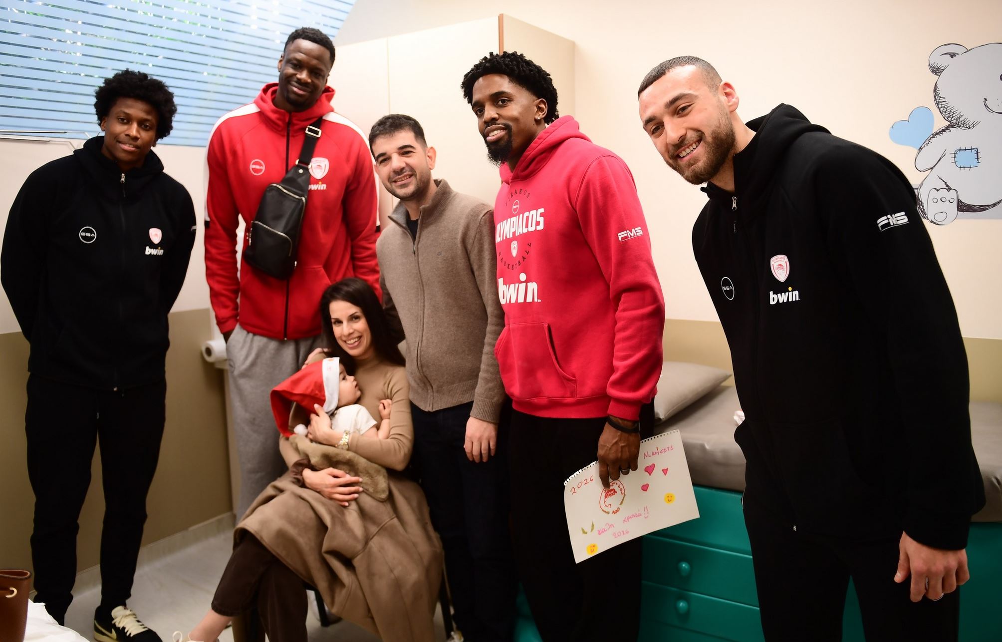 Οι Φρανκ Νιλικίνα, Σακίλ ΜακΚίσικ, Μουστάφα Φαλ και Όμηρςο Νετζήπογλου επισκέφθηκαν την παιδιατρική πτέρυγα, με τους παίκτες του Ολυμπιακού να γεμίζουν χαμόγελα τα παιδιά που νοσηλεύονται εκεί και χρειάζονται λίγη χαρά, πολλή αγάπη και στήριξη όλες τις ημέρες του χρόνου και όχι μόνο τα Χριστούγεννα.