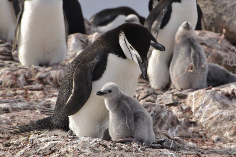 Οι πιγκουίνοι με λουρί της Ανταρκτικής ζουν σε αποικίες όπου οι γονείς μοιράζονται την ανατροφή των μικρών τους.