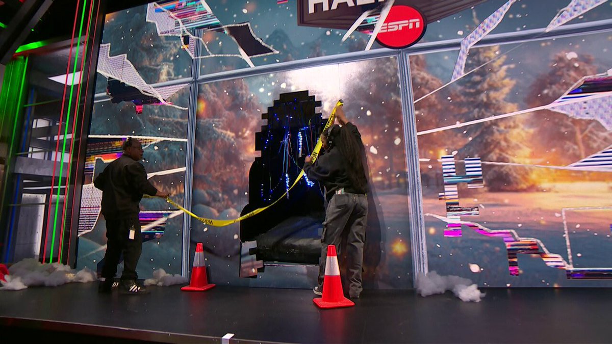 Ο θρύλος του NBA, στην προσπάθειά του να ανέβει γρήγορα τα σκαλιά, έπεσε με φόρα πάνω στη μεγάλη οθόνη videowall που υπάρχει στο στούντιο, την οποία διέλυσε, πριν καταλήξει στο έδαφος.