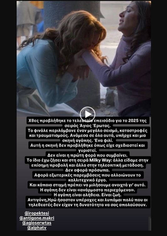 «Χθες προβλήθηκε το τελευταίο επεισόδιο για το 2025 της σειράς Άγιος Έρωτας.