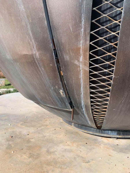 Η σφαίρα – διαμέτρου τριών μέτρων, από χυτό αλουμίνιο, σκουρόχρωμη σαν καβουρντισμένη – φέρει σχισμές από τις οποίες αναδύεται πορτοκαλοκόκκινο φως, σαν φωτιά που σιγοκαίει.
