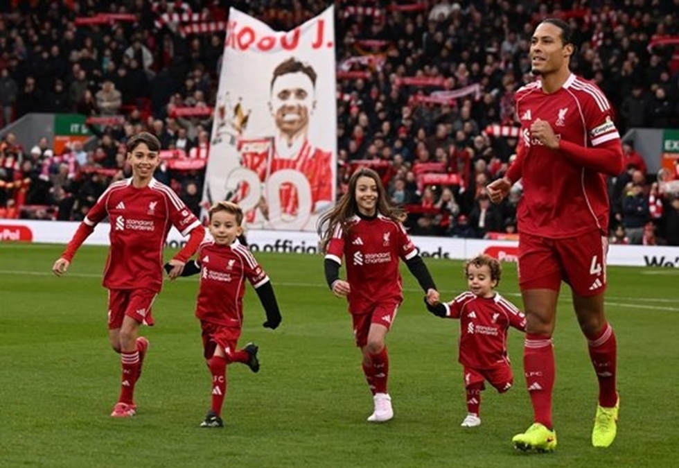Diogo Jota’s sons and other family members joined Virgil van Dijk as Liverpool mascots before kickoff vs. Wolves ❤ pic.twitter.com/gLtR5eJzIQ