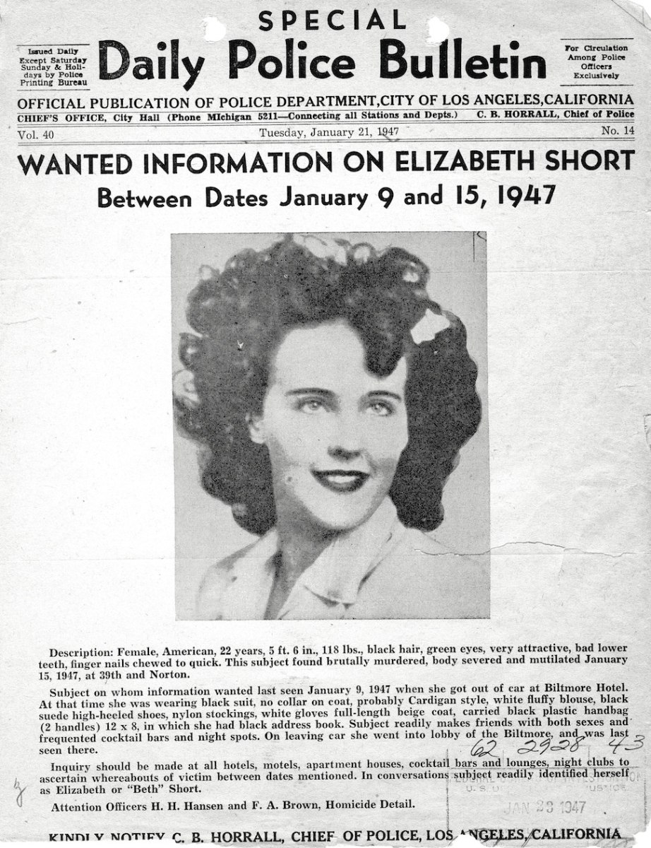 Η Short, μια 22χρονη ανερχόμενη ηθοποιός του Χόλιγουντ, δολοφονήθηκε τον Ιανουάριο του 1947. Το πτώμα της βρέθηκε στη γειτονιά Leimert Park του Λος Άντζελες, ακρωτηριασμένο και κομμένο στη μέση.