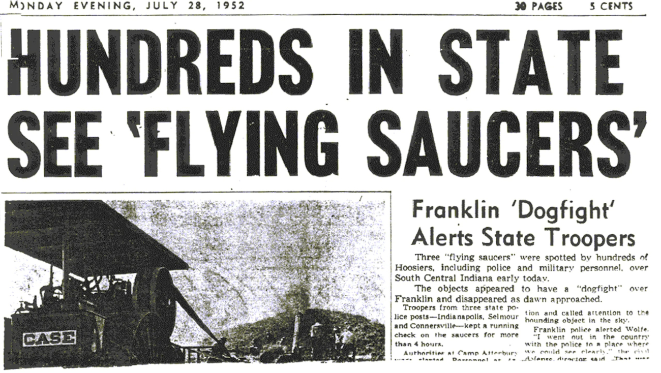 Η εφημερίδα Indianapolis News κάνει λόγο για «εξωγήινη δραστηριότητα» (28 Ιουλίου 1952)