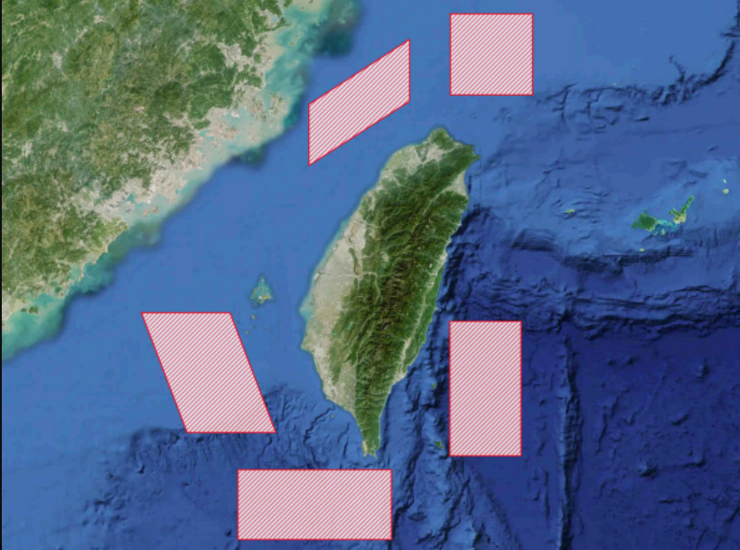 Below is our visualization of the declared exercise zones, per Chinese state media: pic.twitter.com/YOyfl7i7kx