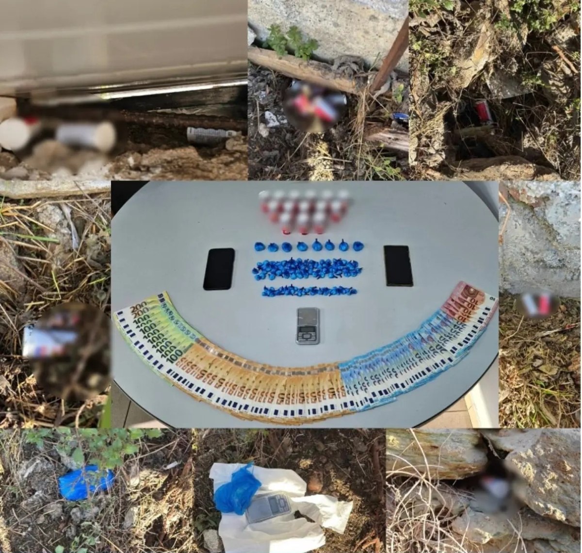Ακολούθησαν έρευνες στην οικία του, καθώς και περιμετρικά αυτής, όπου βρέθηκε χρηματικό ποσό, προερχόμενο από διακίνηση ναρκωτικών, καθώς και επιπλέον -104- μικροδέματα κοκαΐνης.