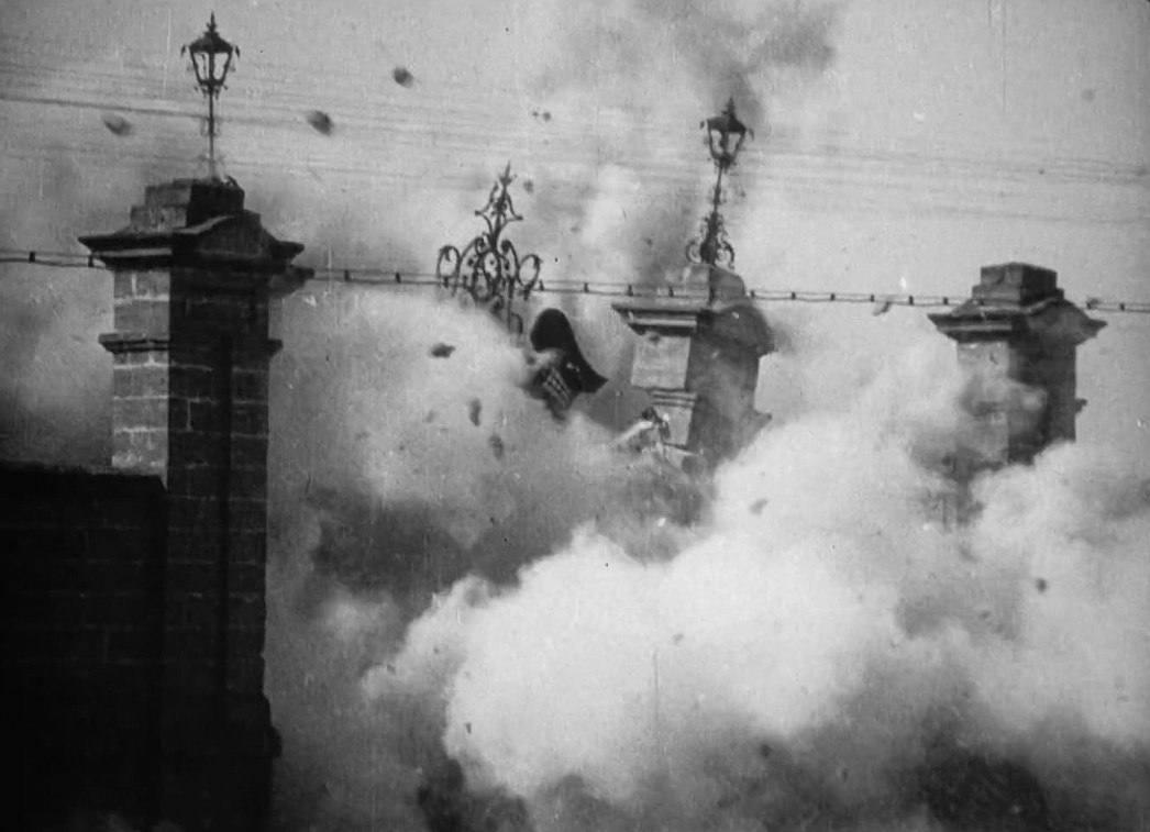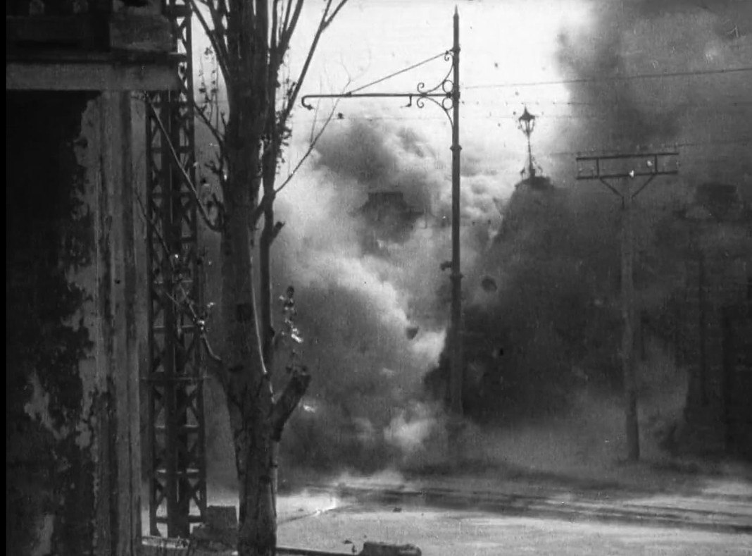 Το χάος μόλις έχει ξεκινήσει. Από ψηλά, ένοπλοι στρατιώτες κατεβαίνουν με αμείλικτη ακρίβεια. Η κάμερα παρασύρεται μέσα στο ανθρώπινο ποτάμι. Ένα παιδί ποδοπατιέται. Μια γυναίκα σωριάζεται. Ένα καροτσάκι μωρού ξεφεύγει και κατρακυλά ανεξέλεγκτα. Γυαλιά θρυμματίζονται πάνω σε ένα αιμόφυρτο πρόσωπο· το στόμα ανοίγει σε μια κραυγή που δεν θα ακουστεί ποτέ.