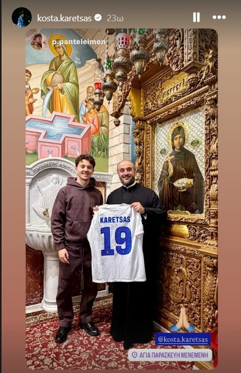 Στην Ελλάδα και συγκεκριμένα στη Θεσσαλονίκη περνάει τις διακοπές του ο Κωνσταντίνος Καρέτσας και με την ευκαιρία δώρισε μια φανέλα του από την Εθνική Ελλάδας σε εκκλησία της Μενεμένης.