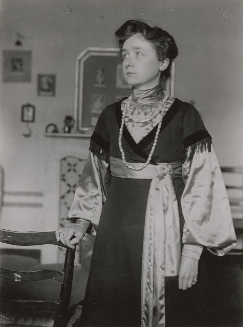 Η Μύντερ στο Κάλμυντς το 1903, κρατώντας έναν καμβά που μόλις ζωγράφισε