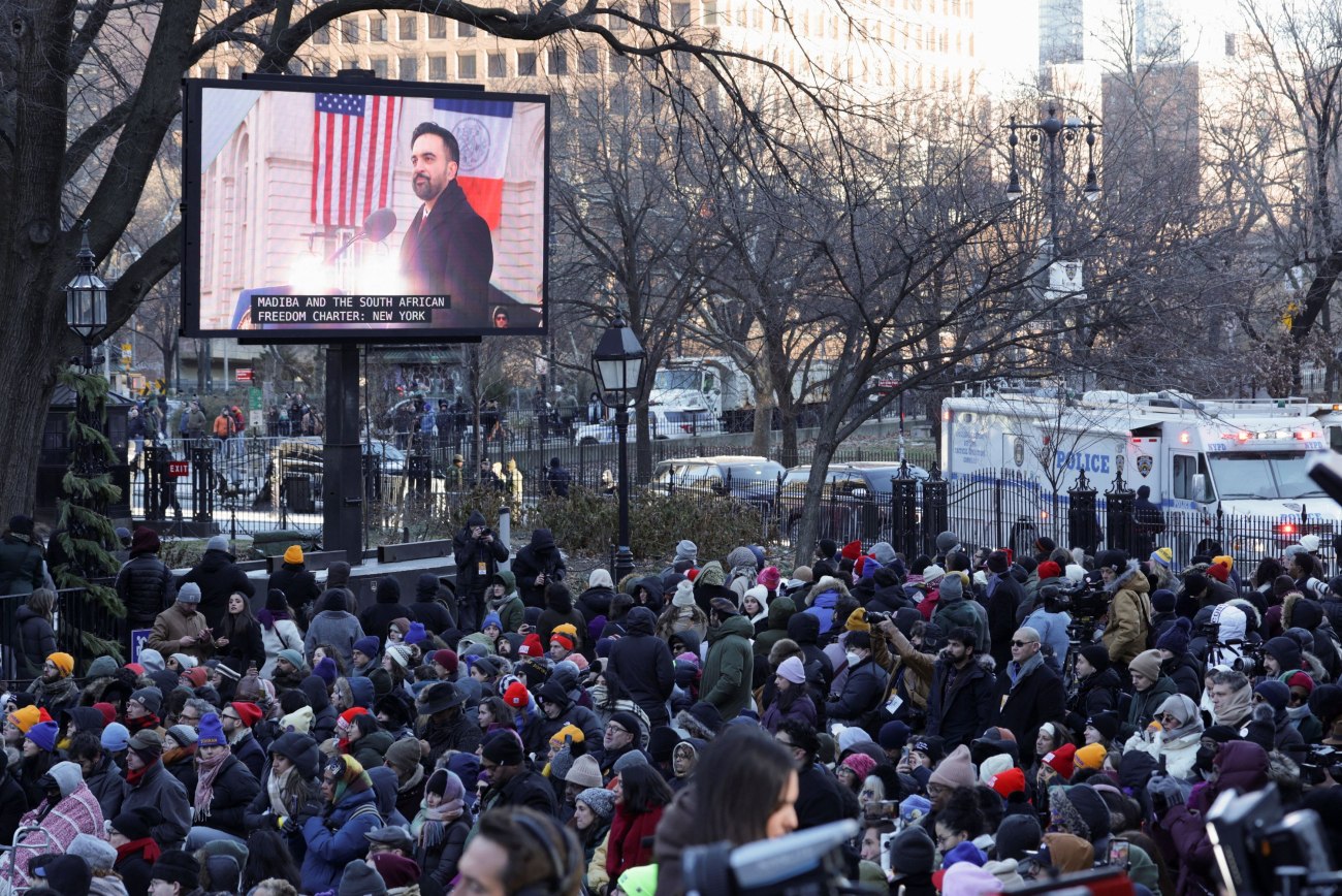 Ο αυτοπροσδιοριζόμενος Δημοκρατικός σοσιαλιστής, Ζοχράν Μαμντάνι, ορκίστηκε λίγο μετά την αλλαγή του χρόνου – ως είθισται – σε μια σύντομη τελετή με ισχυρούς συμβολισμούς και αργότερα μέσα στην ημέρα πραγματοποιήθηκε και η δημόσιας τελετή ορκωμοσίας του στα σκαλιά του δημαρχείου.