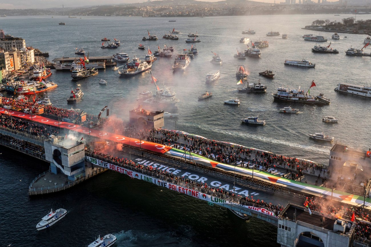 Μισό εκατομμύριο κόσμου συγκεντρώθηκε στην Κωνσταντινούπολη παρά το έντονο κρύο για να κάνει πορεία μέχρι τη Γέφυρα του Γαλατά και να διαμηνύσει ότι δεν θα ξεχάσει τη Γάζα και τους Παλαιστινίους