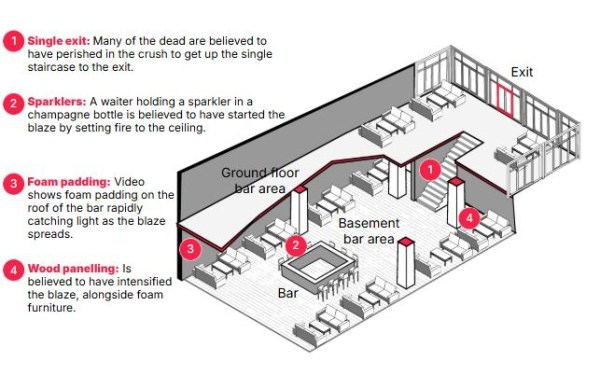 Tο μπαρ δεν είχε υψηλή βαθμολογία ασφάλειας (6,5 στα 10 στα σχετικά διαδικτυακά σχόλια), ενώ οι ιδιοκτήτες του αντιμετωπίζουν τώρα μια σειρά από ερωτήματα σχετικά με το πώς η θανατηφόρα πυρκαγιά εξαπλώθηκε τόσο γρήγορα στο υπόγειό τους και το μετέτρεψε σε παγίδα θανάτου.