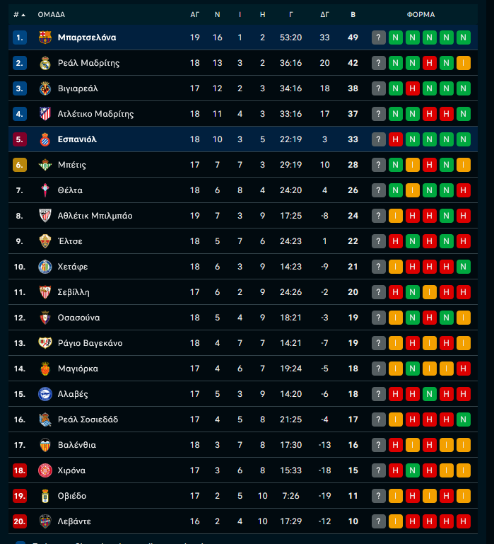 Η βαθμολογία της La Liga