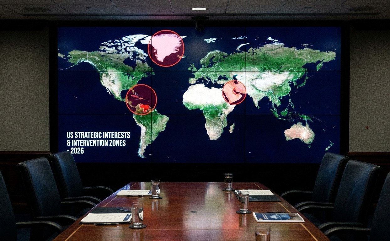 Η χαρτογράφηση των πρόσφατων προεδρικών δηλώσεων και τελεσιγράφων αποκαλύπτει μια στρατηγική που εκτείνεται από την Αρκτική έως τις τροπικές ζώνες της Λατινικής Αμερικής και την Εγγύς Ανατολή, καταργώντας στην πράξη παραδοσιακές διπλωματικές «κόκκινες γραμμές».