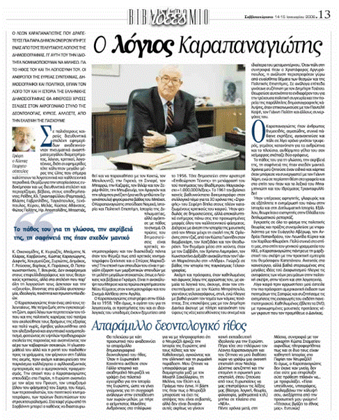 «ΤΑ ΝΕΑ», 14-15.1.2006, Ιστορικό Αρχείο «ΤΟ ΒΗΜΑ» & «ΤΑ ΝΕΑ»