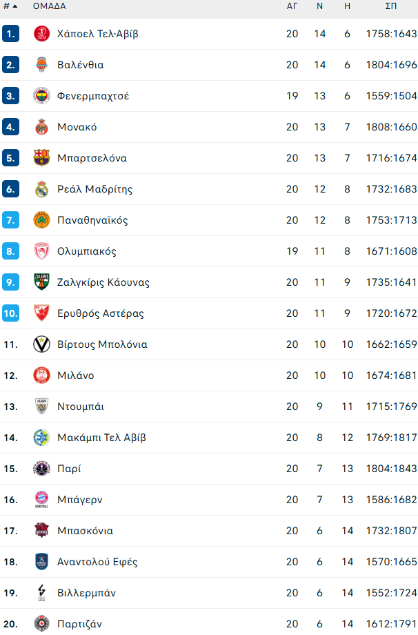 Παναθηναϊκός (7ος, 12-8) και Ολυμπιακός (8ος, 11-8) θέλουν να ξεπεράσουν τις ήττες από Αρμάνι Μιλάνο και Φενέρμπαχτσε και επιζητούν οπωσδήποτε νίκες εντός έδρας με Βίρτους Μπολόνια και Μπάγερν Μονάχου.