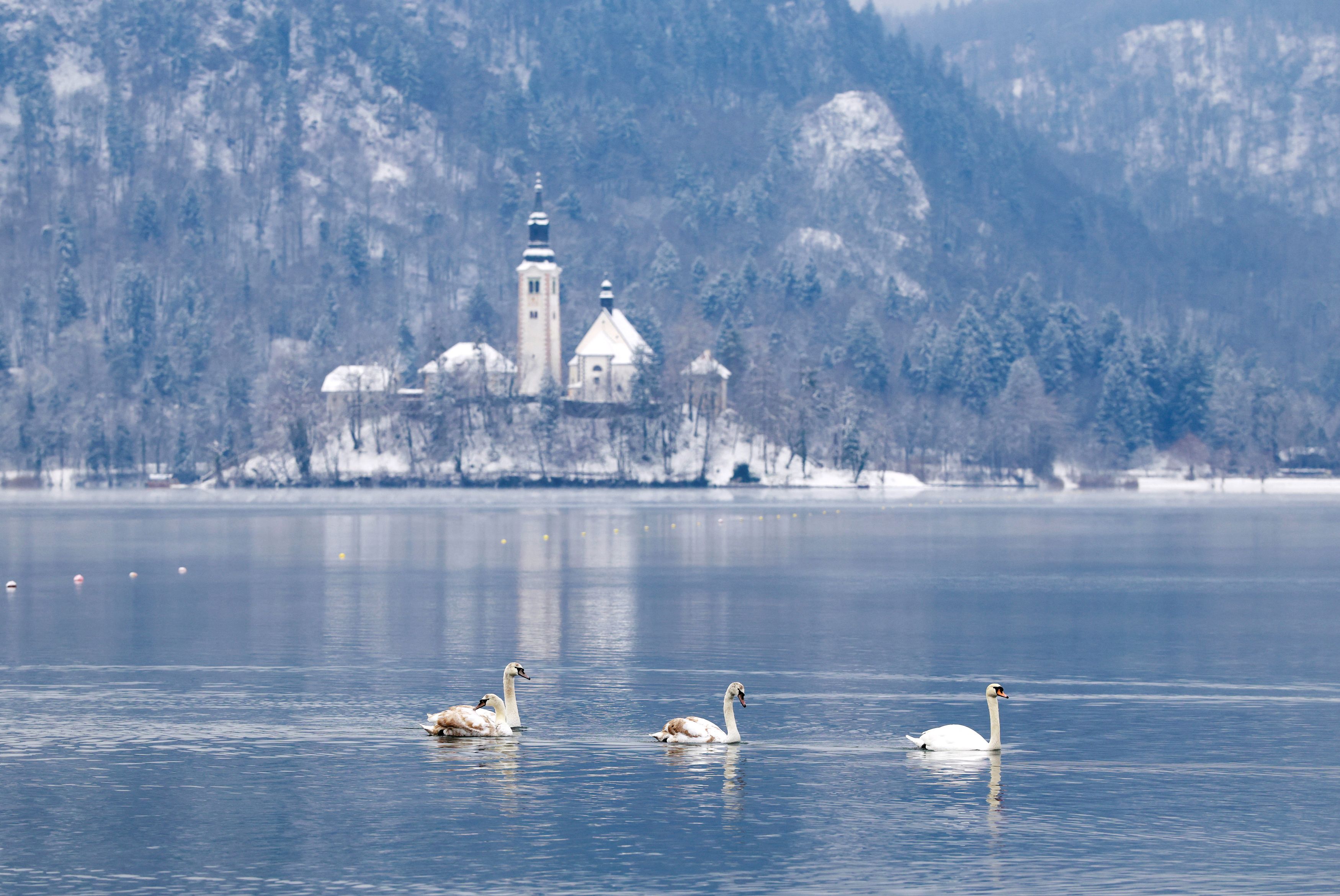 Κύκνοι στη λίμνη του Μπλεντ, Σλοβενία / REUTERS/Borut Zivulovic