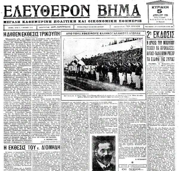 «ΕΛΕΥΘΕΡΟΝ ΒΗΜΑ», 5.4.1925, Ιστορικό Αρχείο «ΤΟ ΒΗΜΑ» & «ΤΑ ΝΕΑ»