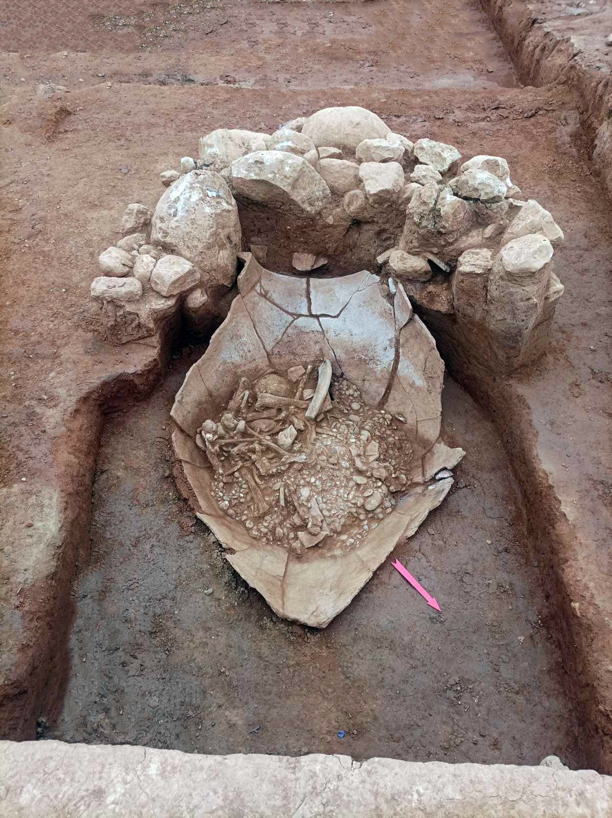 Κατά τις σωστικές ανασκαφές που πραγματοποιεί από το 2024 η Εφορεία Αρχαιοτήτων Ανατολικής Αττικής στο πλαίσιο του αρχαιολογικού υποέργου στο έργο «Διευθέτηση – Οριοθέτηση Ρέματος Ραφήνας», αποκαλύφθηκε μια εξαιρετικά σημαντική ταφή σε πίθο, που χρονολογείται στην Πρώιμη Εποχή του Χαλκού (3200–2000 π.Χ.).