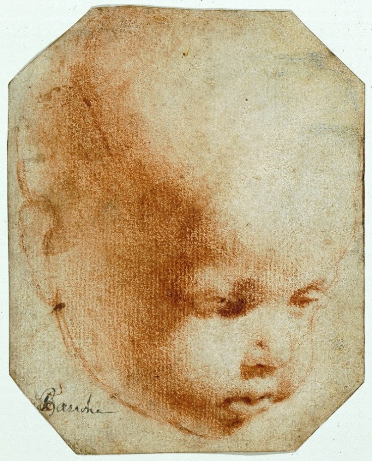 Το έργο είναι μικρό, φτιαγμένο με κόκκινη κιμωλία πάνω σε χαρτί, και εδώ και δεκαετίες διχάζει τους ειδικούς. Κάποιοι αναγνωρίζουν στο Holy Child το χέρι του Λεονάρντο ντα Βίντσι· άλλοι το αποδίδουν σε μαθητή του εργαστηρίου του.