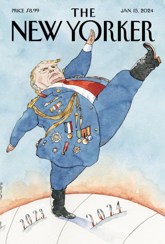 «Όταν ο πρόεδρος Τραμπ ανακοίνωσε τη σύλληψη του προέδρου της Βενεζουέλας Νικολά Μαδούρο από τον αμερικανικό στρατό, ο σκιτσογράφος Μπάρι Μπλιτ αποφάσισε ότι η εικόνα του για το εξώφυλλο του τεύχους της 19ης Ιανουαρίου 2026 θα μπορούσε να ανακαλεί τις πολιτικές γελοιογραφίες της Χρυσής Εποχής που σατιρίζονταν τους πετρελαϊκούς μεγιστάνες και τους μικρούς τυράννους της εποχής» όπως ανέφερε το περιοδικό στην επεξήγηση της επιλογής εξωφύλλου.