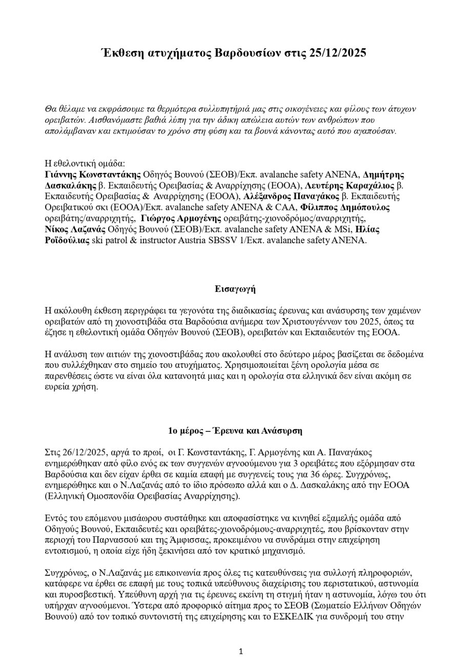 Βαρδούσια Όρη: Τι προκάλεσε τη φονική χιονοστιβάδα – Τι αναφέρει η τεχνική έκθεση