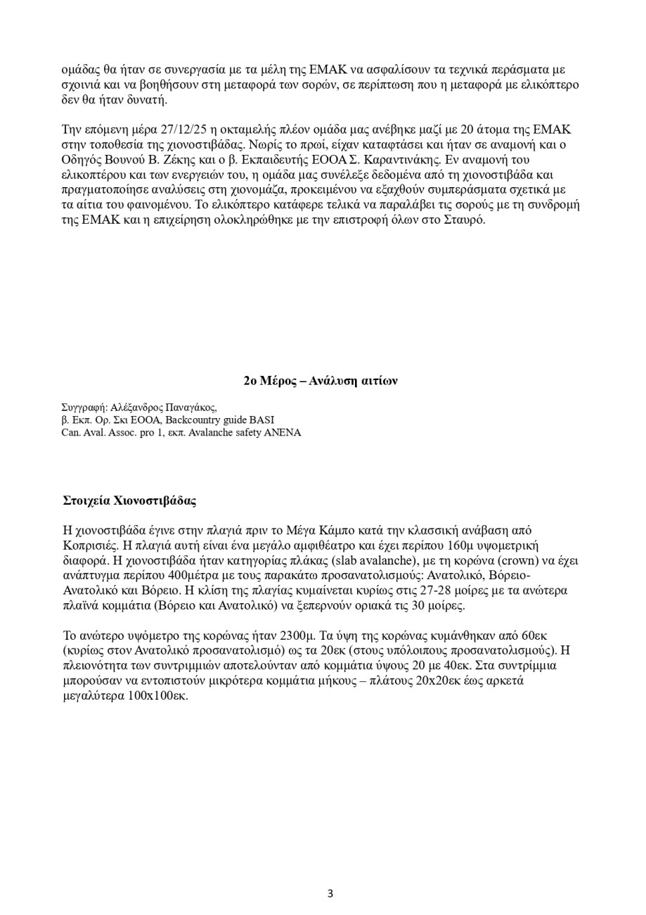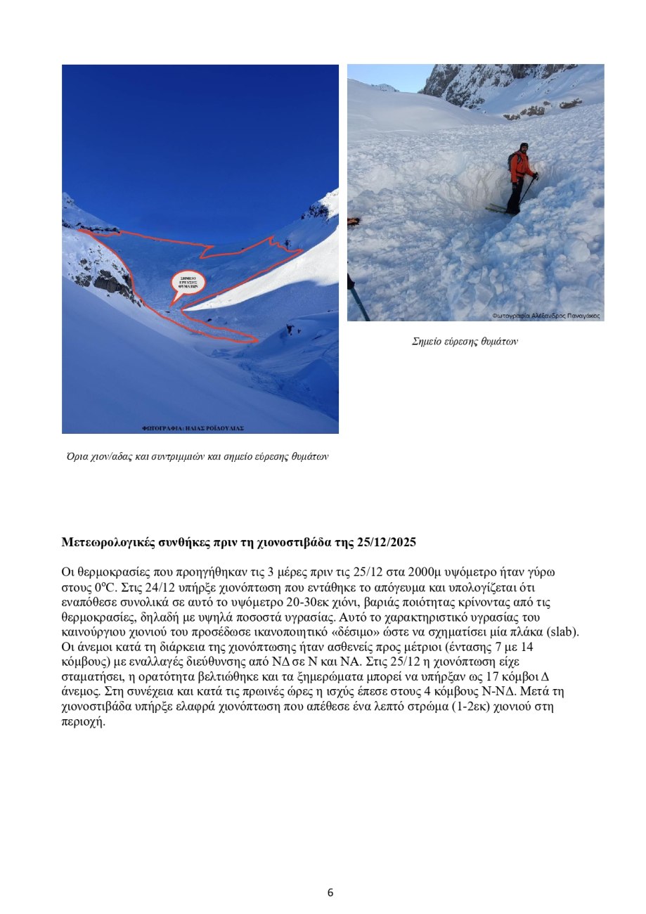 Μέλη της Ομοσπονδίας βρέθηκε στην περιοχή στις 26 Δεκεμβρίου 2025 και συμμετείχαν στην επιχείρηση εντοπισμού και ανάσυρσης των θυμάτων, επιχειρεί να ανασυνθέσει με τεχνική ακρίβεια τα γεγονότα που οδήγησαν στη χιονοστιβάδα και στον θάνατό τους.
