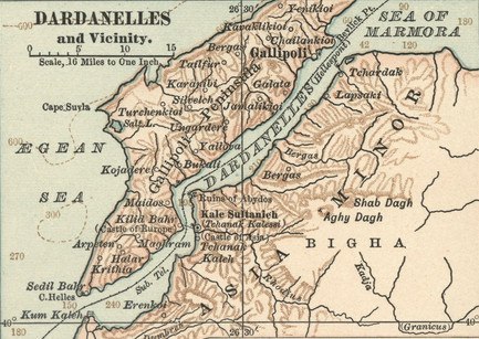 Το πεδίον της μάχης εις τα Δαρδανέλλια φαίνεται όπως το αφήσαμεν. Είνε στείρα γη, τα δε ειρηνικά έργα της γεωργίας ολίγον μετέβαλον την φυσιογνωμίαν του. Το βραχώδες οροπέδιον και η ακτή της χερσονήσου είνε η λειψανοθήκη προσφιλών αναμνήσεων μεγάλου αγώνος. Ο κύριος σκοπός του ταξειδίου μας ήτο η αποκάλυψις μνημείου αποτελούντος φόρον ευλαβείας προς τους νεκρούς μας. Το μνημείον τούτο υψούται επί εδάφους ήδη ιστορικού. Επί της αντιθέτου πλευράς του Βοσπόρου εκτείνεται η πεδιάς της Τροίας, ποτιζομένη υπό των ποταμών Σιμόεντος και Σκαμάνδρου. Τα τουρκικά πυροβολεία εκρύπτοντο όπισθεν των τάφων του Αχιλλέως και του Πατρόκλου. Το αρχηγείον μου ήτο επί του υψώματος ένθα έπεσεν ο Πρωτεσίλαος, ανεσκάψαμεν προχώματα όπου ο Μέγας Αλέξανδρος απεβιβάσθη εξ Ασίας, όπισθεν δε ημών επί της αντιθέτου πλευράς της χερσονήσου απλούται η νήσος Σαμοθράκη.