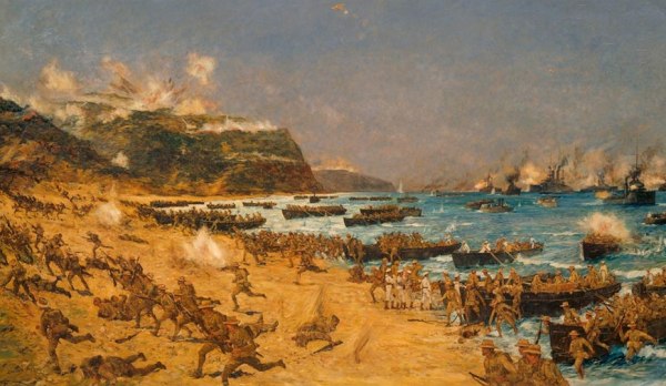 Ενώ μία ταξιαρχία του γαλλικού στρατού απεβιβάσθη εις Κουμ Καλέ, επί της ασιατικής ακτής, η 29η βρεττανική μεραρχία, υπό την διοίκησιν του στρατηγού Χάντερ Ουέστων, ενήργησεν απόβασιν εις το άκρον της χερσονήσου, υπό τα ερείπια του αρχαίου φρουρίου Σεντέλ Μπαχρ.