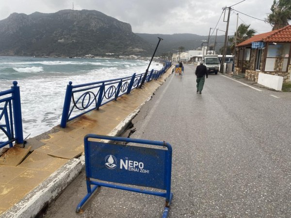 Σοβαρά προβλήματα σε παραλιακό δρόμο της Κω από τους θυελλώδεις ανέμους