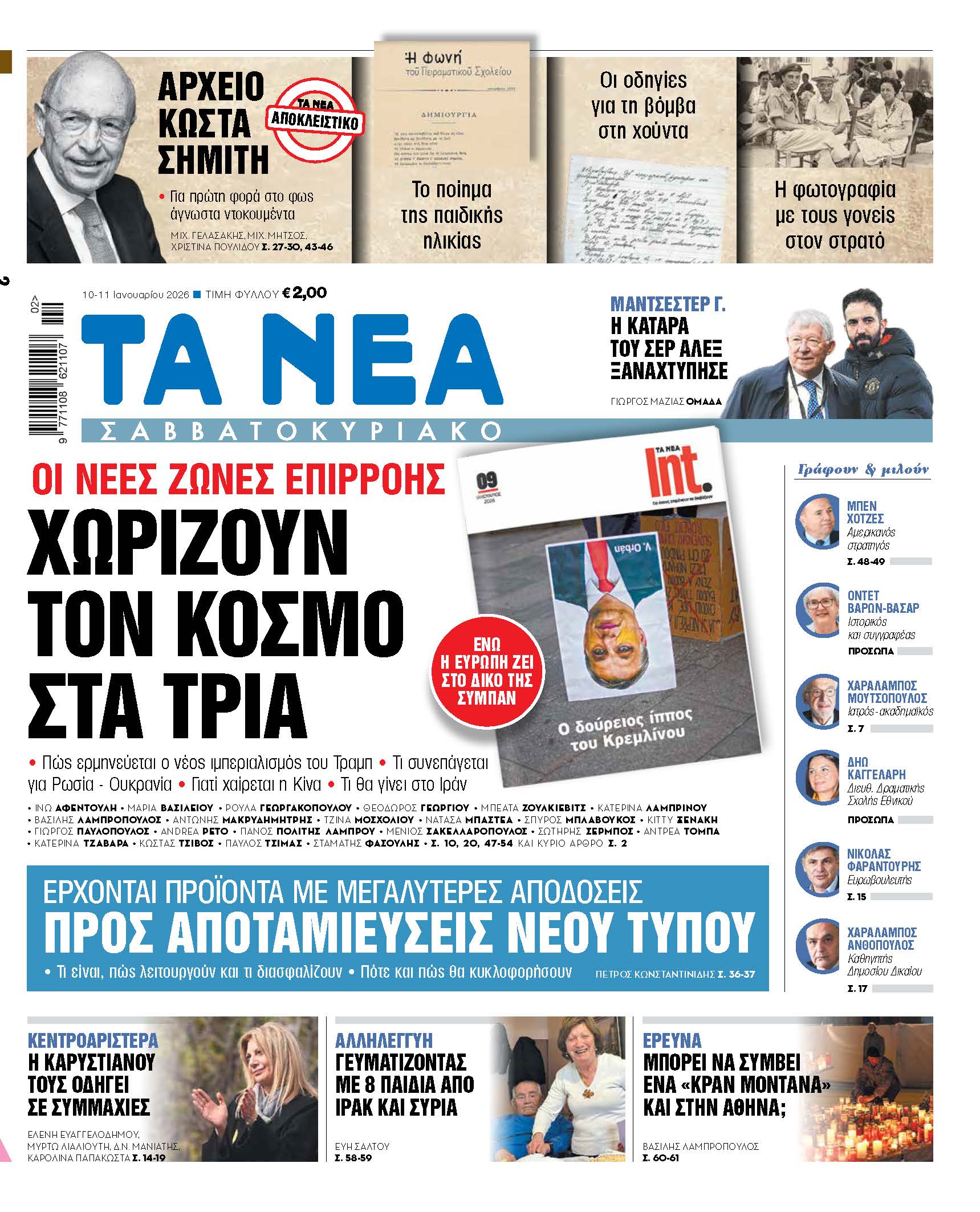 Στα «Νέα Σαββατοκύριακο»: Χωρίζουν τον κόσμο στα τρία