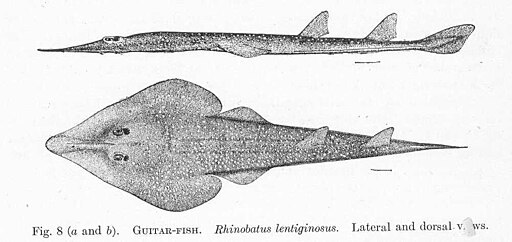 Η μαύρη κιθάρα (Blackchin guitarfish), με το παράξενο σχήμα που θυμίζει συνδυασμό καρχαρία και σαλαχιού, είναι ενδημική της Μεσογείου και του ανατολικού Ατλαντικού.