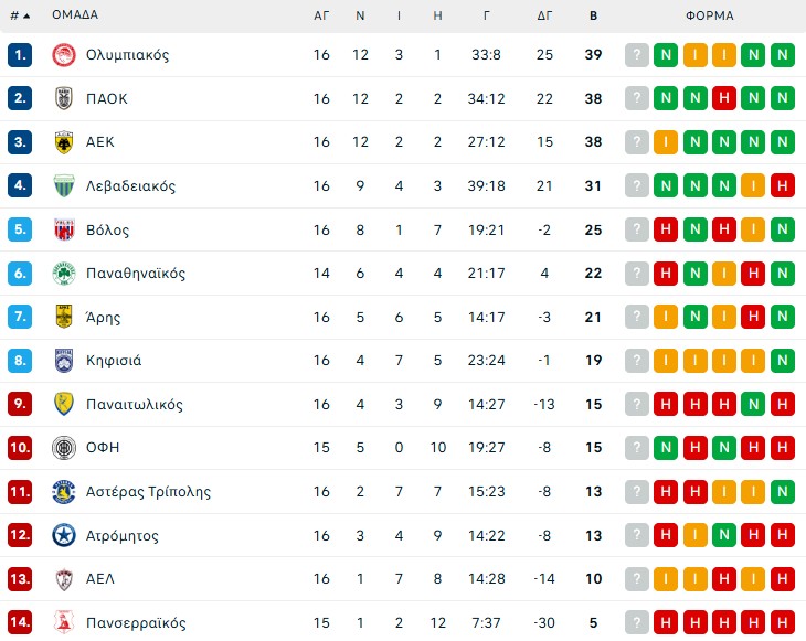 Το πρόγραμμα και τα αποτελέσματα της 16ης αγωνιστικής: