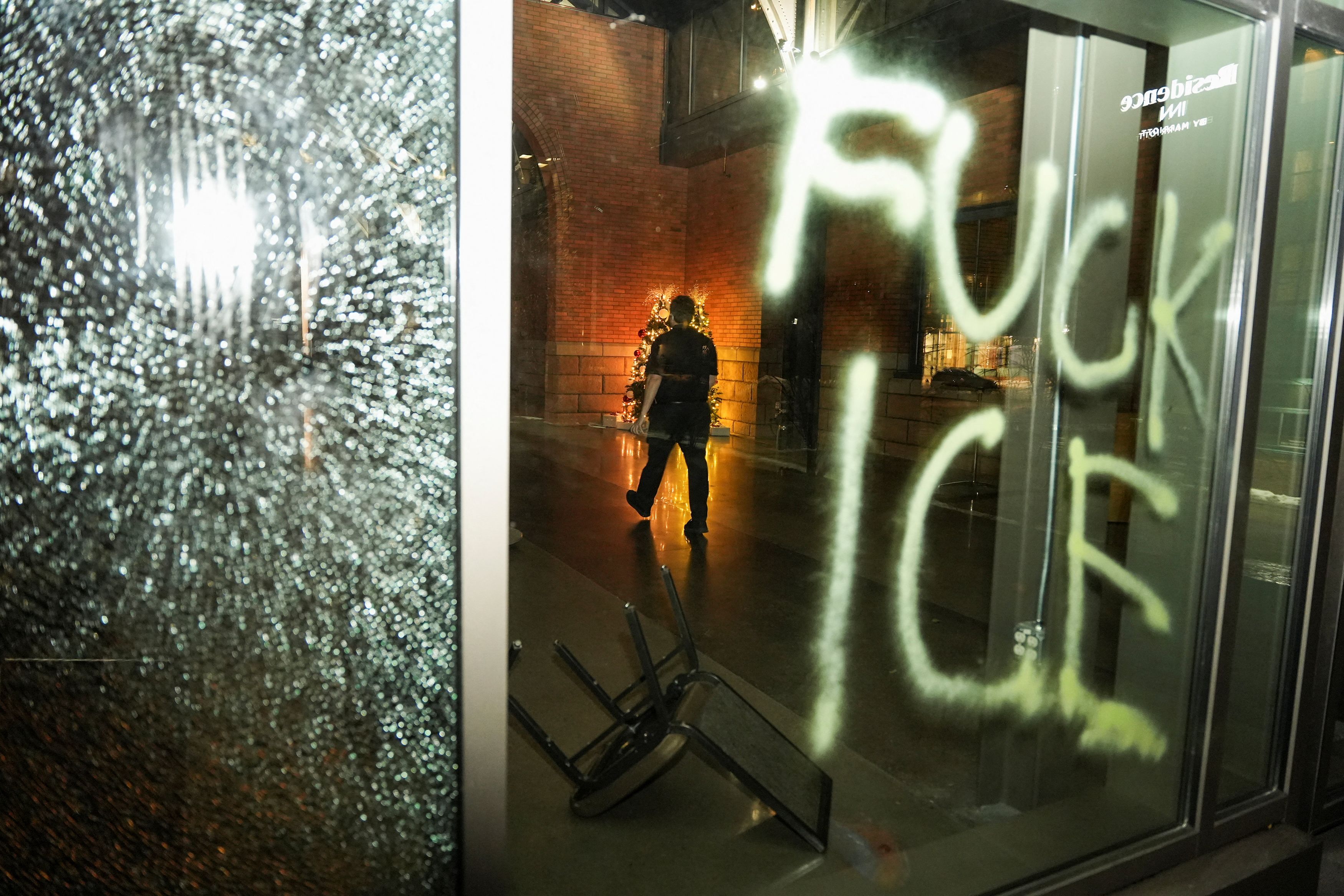 Συνθήματα κατά της ICE σε ξενοδοχείο που διαμένουν ομοσπονδιακοί πράκτορες