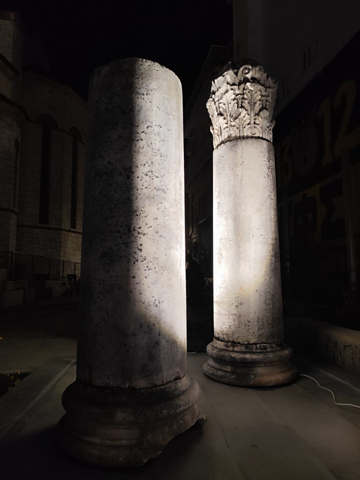 Επανατοποθέτηση μαρμάρινων κιόνων στον αύλειο χώρο του ναού της Μητρόπολης Αγρινίου