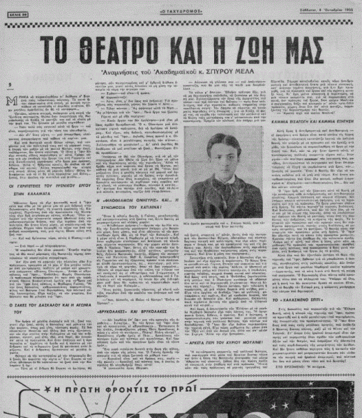«Ο ΤΑΧΥΔΡΟΜΟΣ», 8.10.1955, Ιστορικό Αρχείο «ΤΟ ΒΗΜΑ» & «ΤΑ ΝΕΑ»