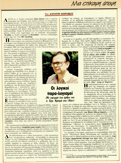 *Κείμενο του Σαράντου Καργάκου, που έφερε τον τίτλο «Οι λογικοί παρα-λογισμοί» και είχε δημοσιευτεί στον «Οικονομικό Ταχυδρόμο» στις 3 Ιανουαρίου 1991.